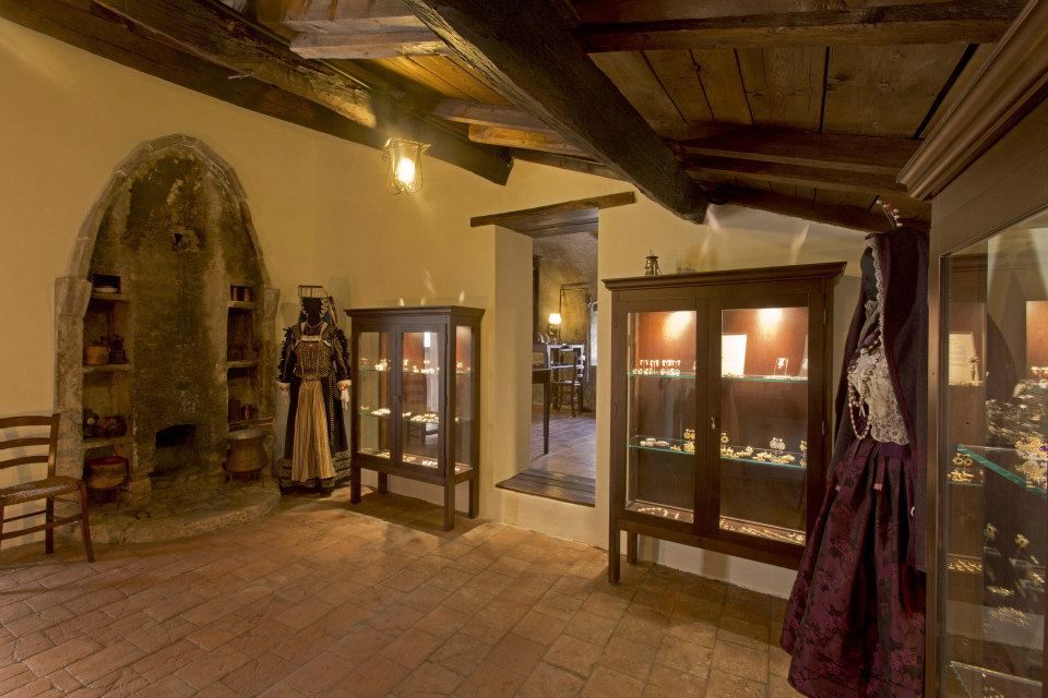 In questa sala troviamo i lavori più recenti dei due maestri orafi che mantengono il sapore della tradizione, sia nella forma che nell’esecuzione. I gioielli creati a Calascio vengono infatti realizzati con strumenti originali del 1600, tutti rigorosamente funzionanti, presenti nell’adiacente laboratorio d’oreficeria antica dove i due fratelli lavorano durante l’estate.