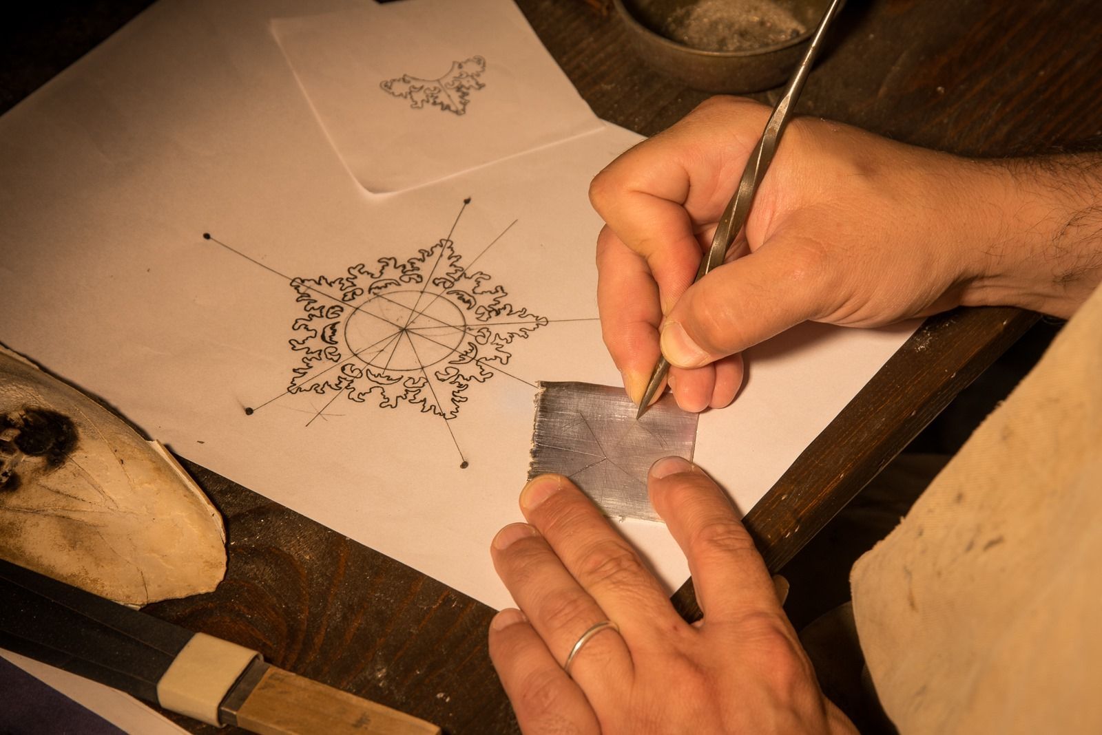 grazie ad essi, sotto i nostri sguardi basiti, assistiamo a una saldatura di un cherubino realizzata esclusivamente con uno stoppino, una base di legno refrattaria, una cannula di bronzo e il soffio “vitale” dell’orafo.